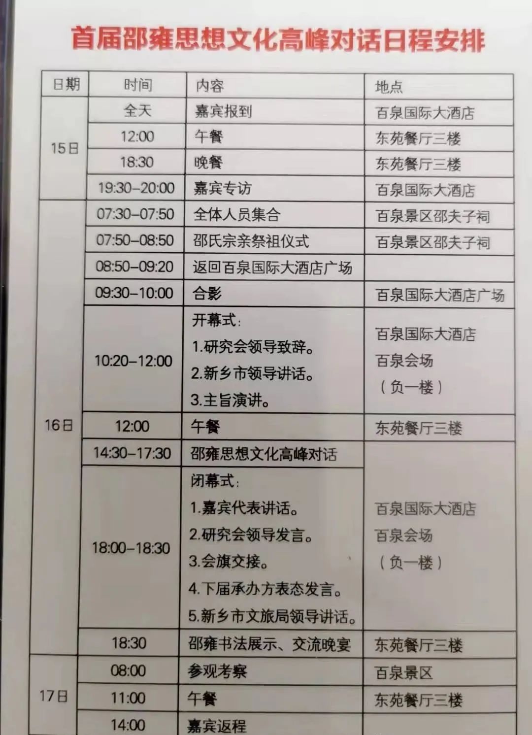 《首届邵雍思想文化高峰对话》于2019年11月16至17日,在辉县百泉成功举办。来自北京、天津、江苏、安徽、陕西、湖北以及省内各地市等160余名邵雍思想文化研究专家、学者、邵氏宗亲等齐聚一堂,缅怀致敬先哲邵雍、探讨邵雍文化传承。